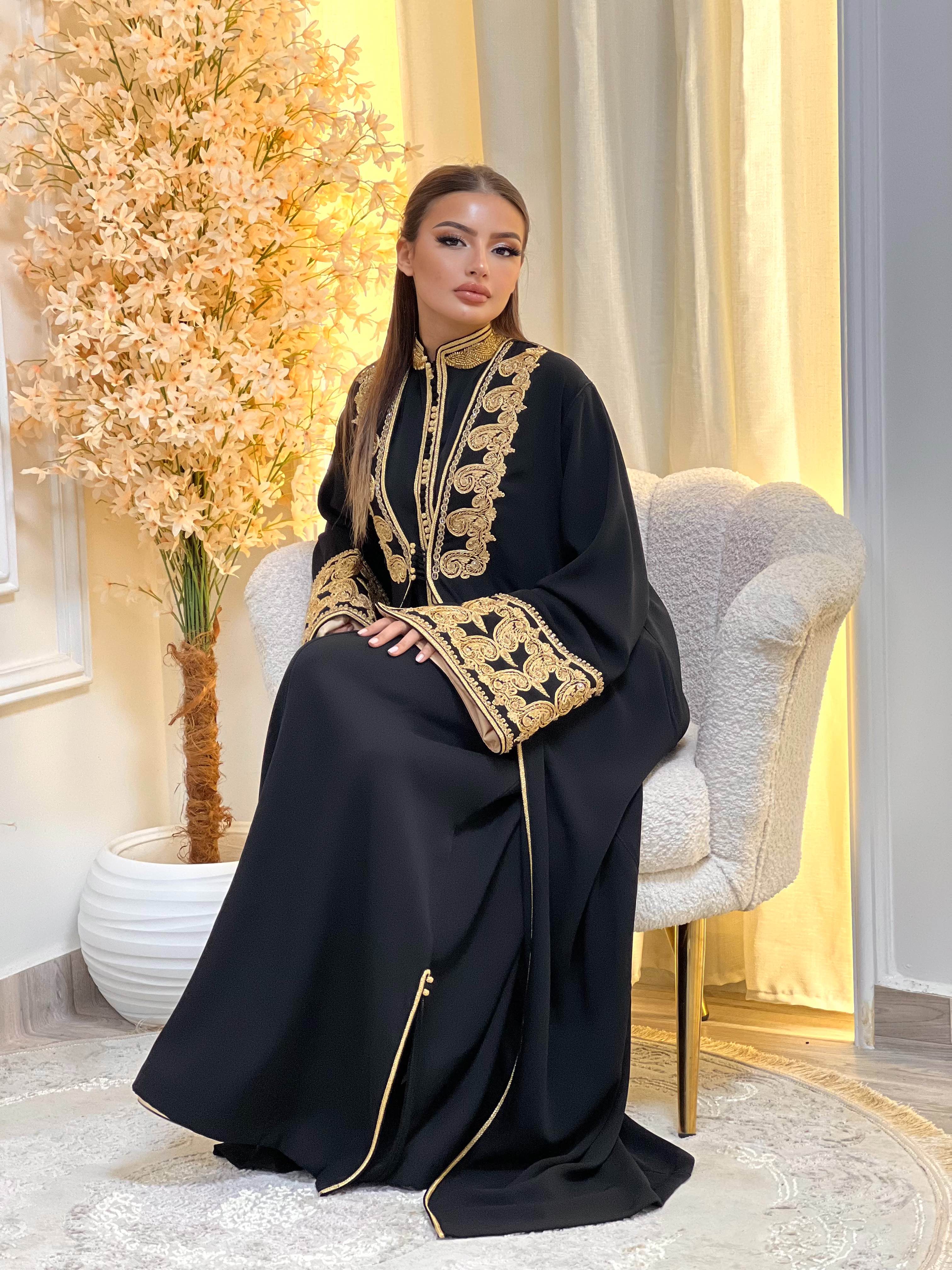 The measurements provided in the chart reflect the actual dimensions of the kaftan, not body measurements. All sizes are listed in centimeters (cm).