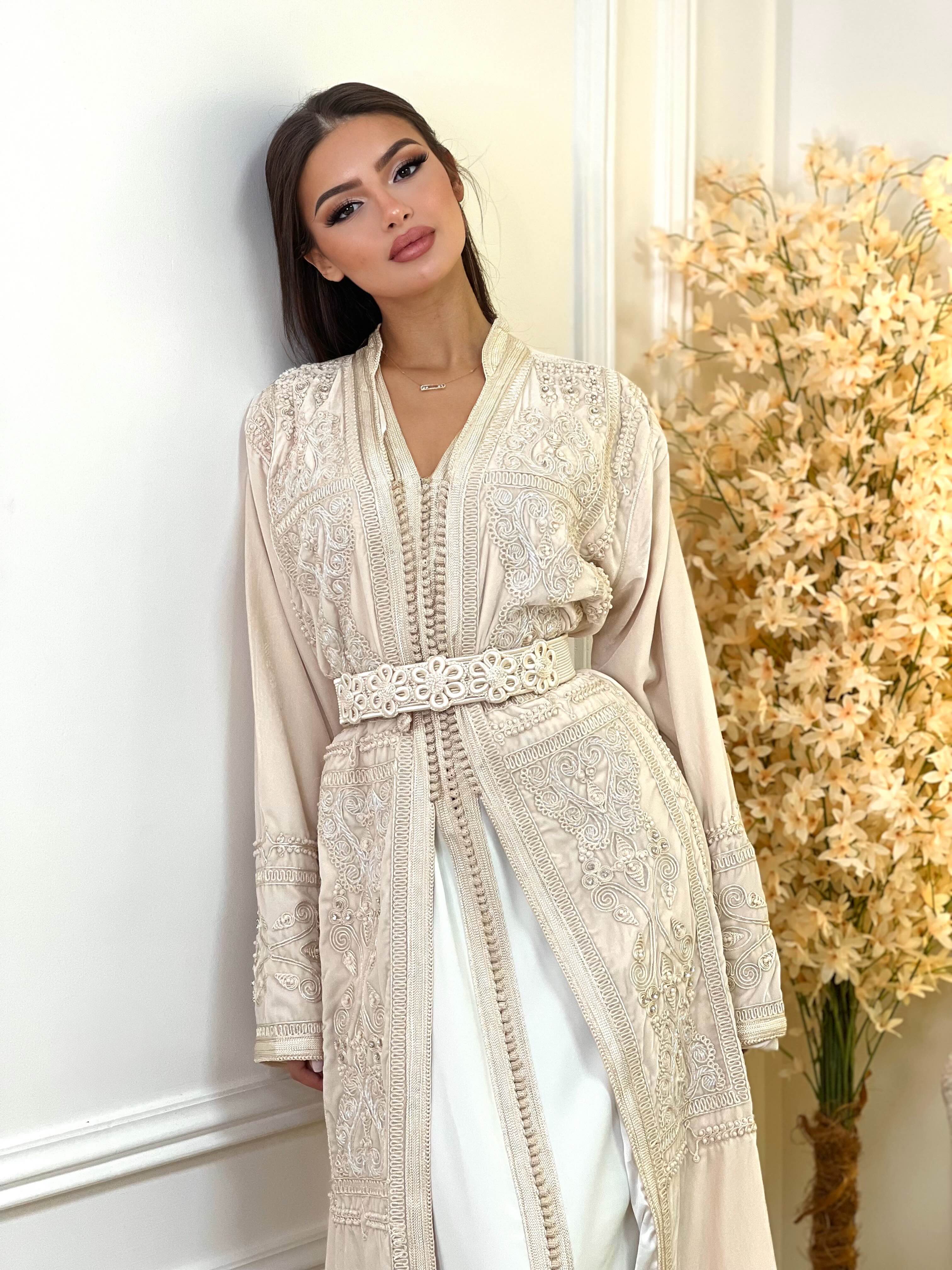 Each kaftan includes an adjustable belt, allowing you to customize the fit according to your preference.