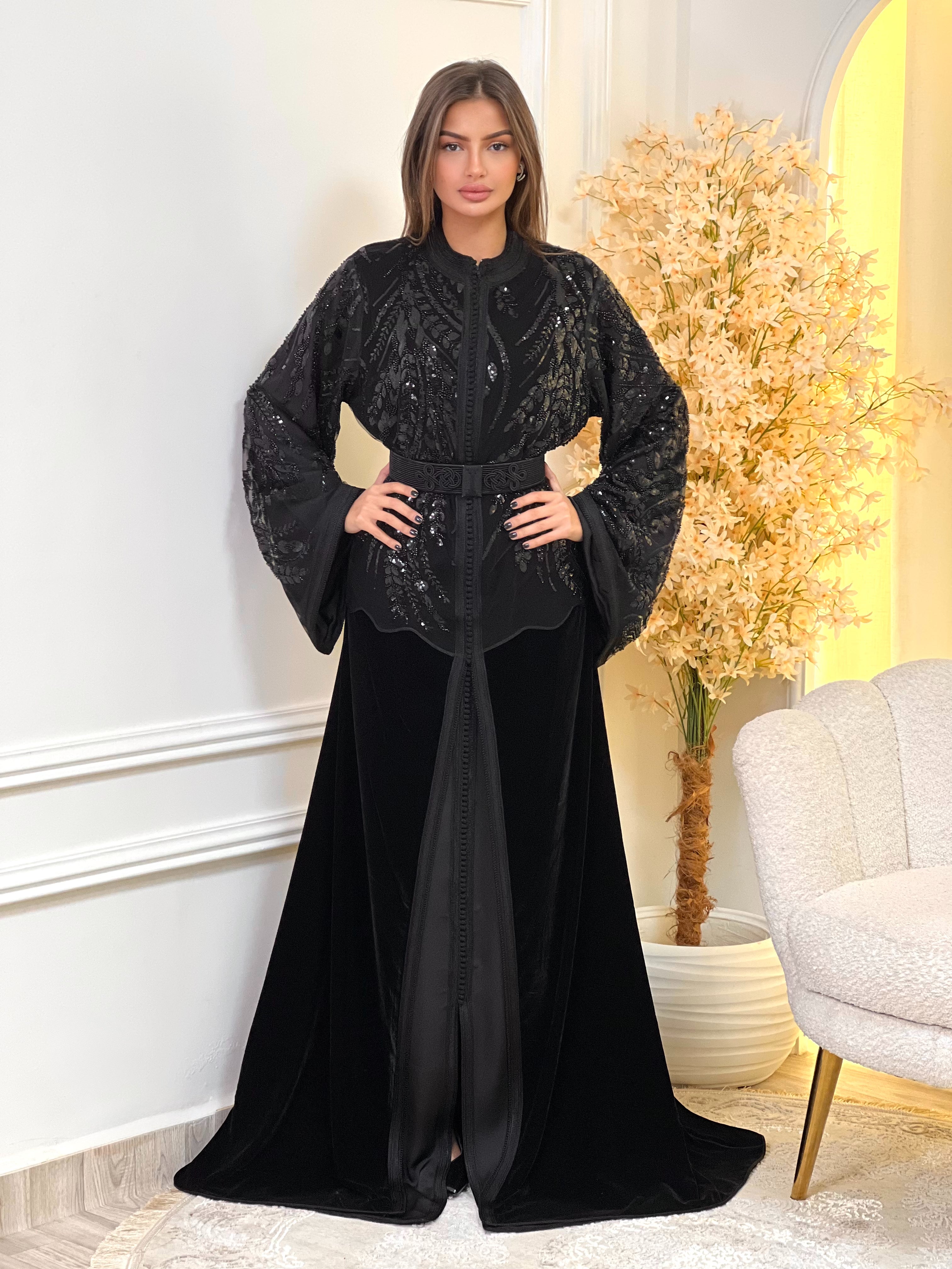Each kaftan is accompanied by its matching belt and presented in a custom protective cover to keep it in perfect condition.