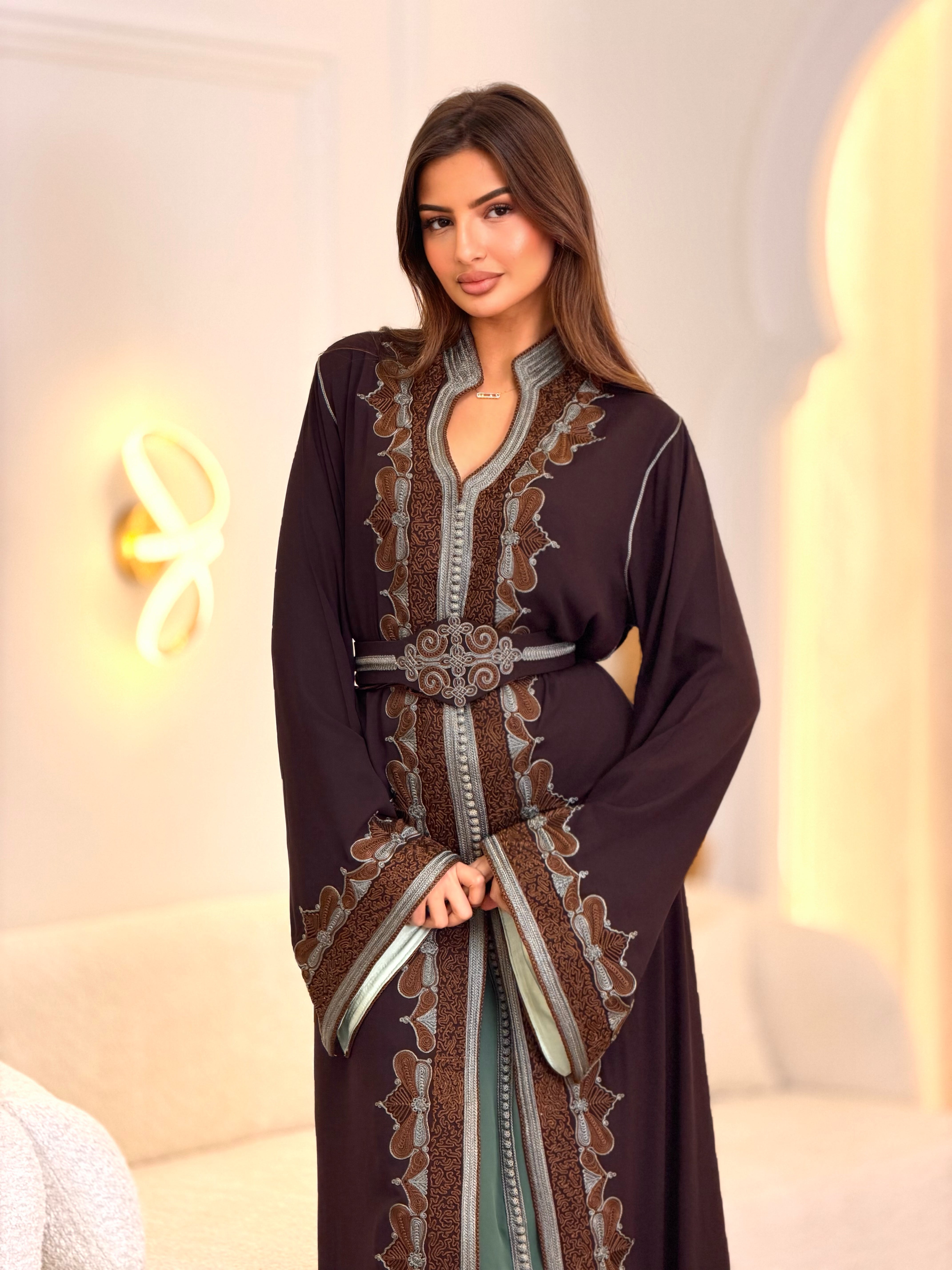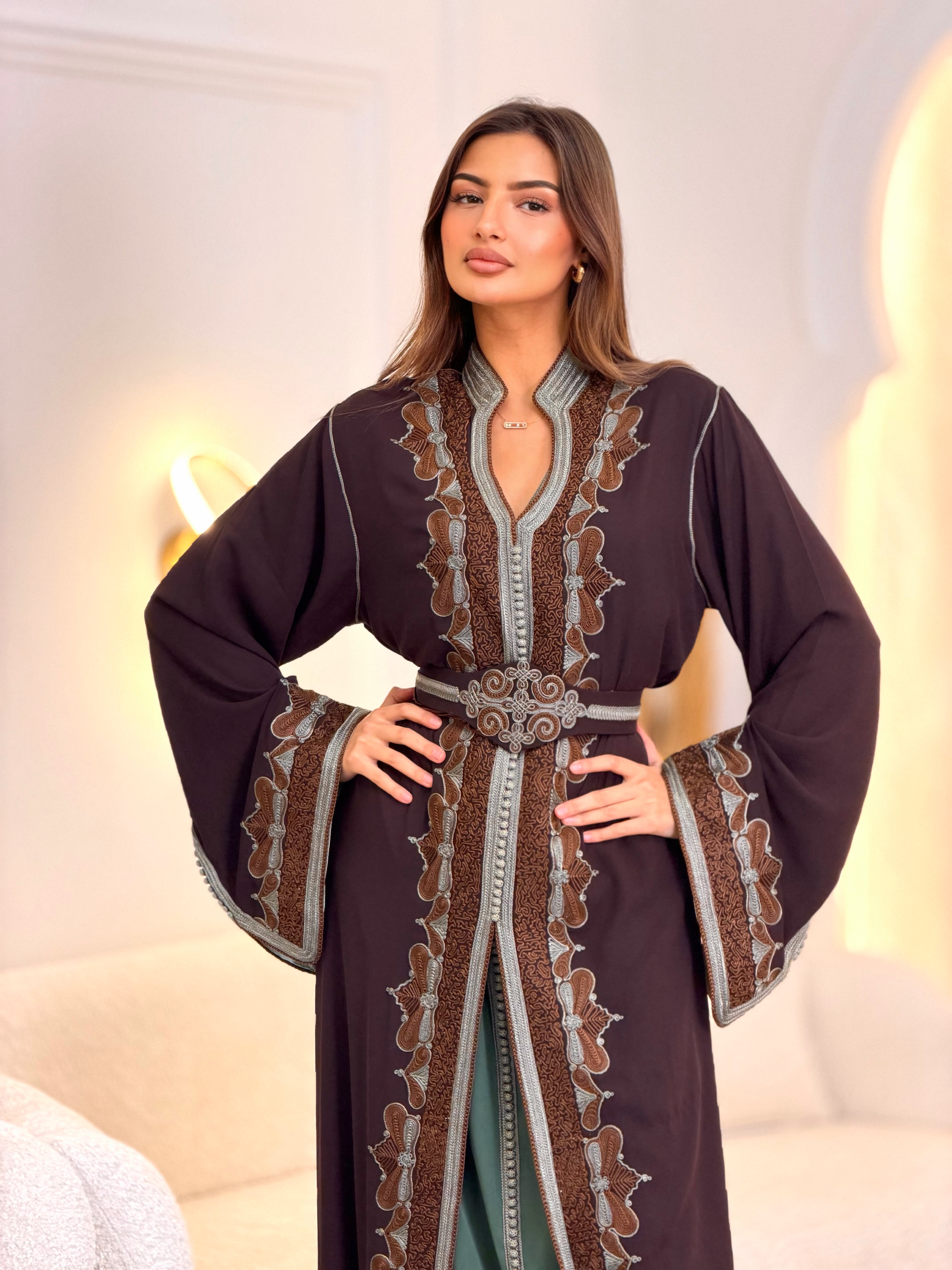 Each kaftan includes an adjustable belt, allowing you to customize the fit according to your preference.