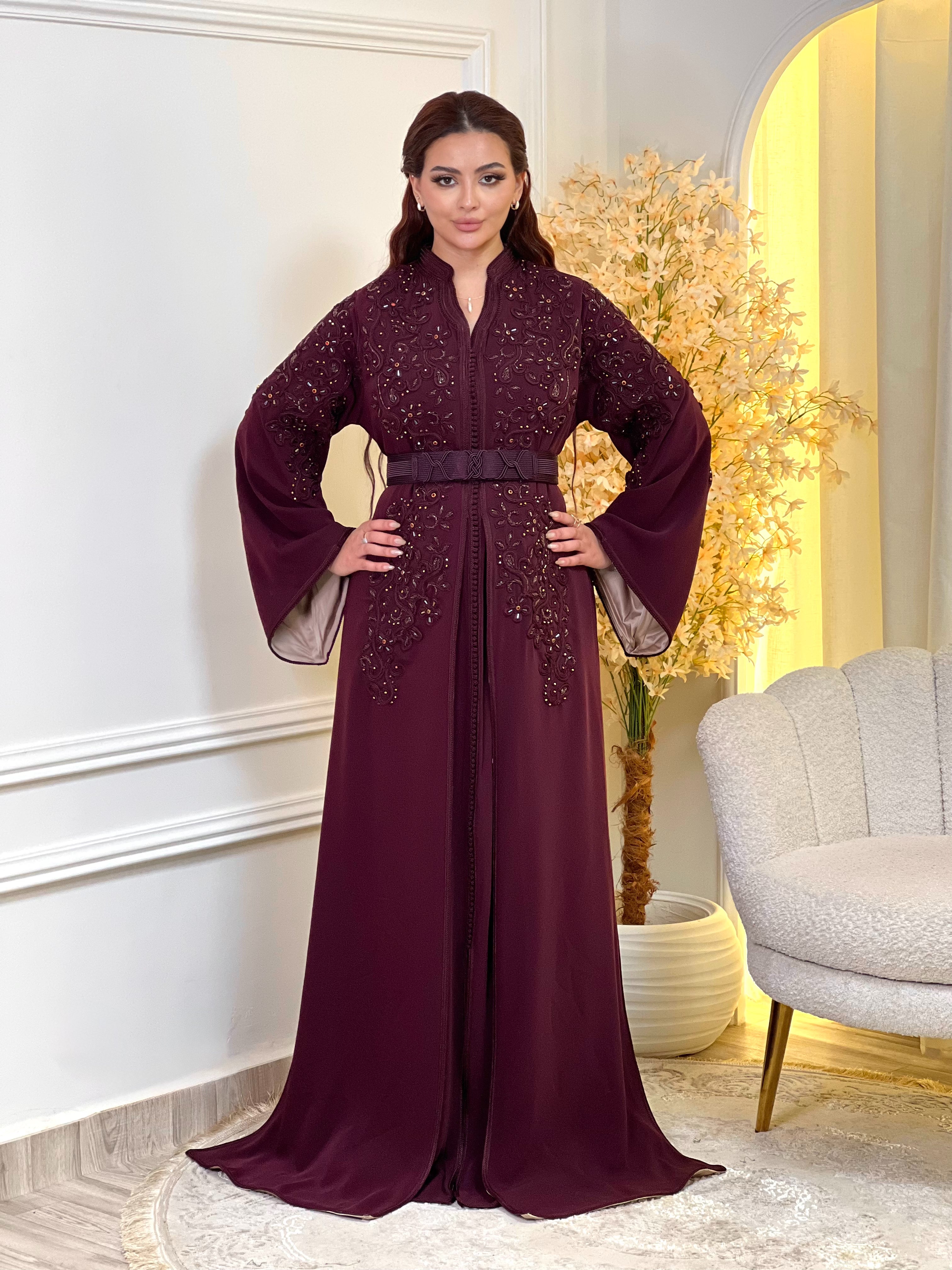 Each kaftan includes an adjustable belt, allowing you to customize the fit according to your preference.